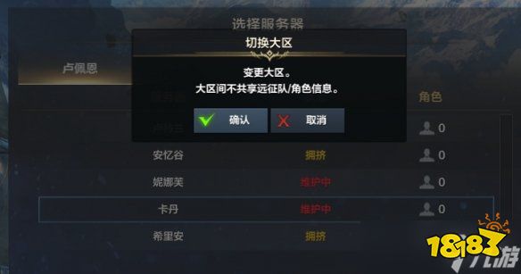 2、玩家可以点击左上角的卢佩恩,系统会弹出是否更换大区,点击是即可刷新服务器状态。