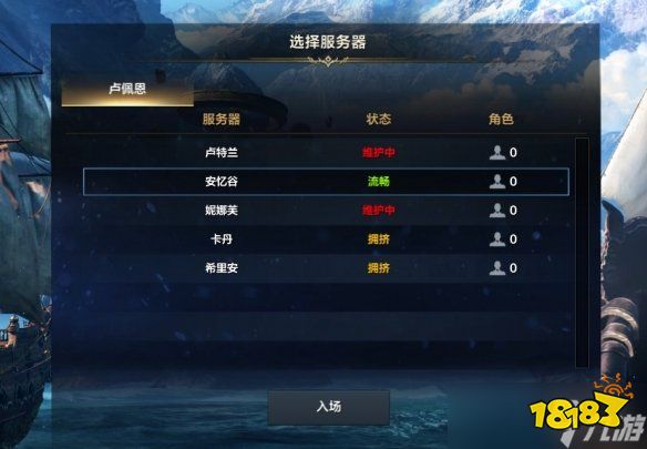 4、选择状态非维护中的服务器后点击入场即可进入,别在选择服务器页面呆久了,会弹出错误闪退。