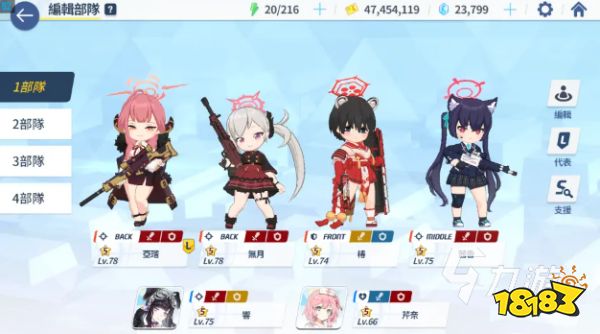 蔚蓝档案游戏中的一个队伍包含四个striker位置和两个special位置,striker位置的角色会直接参与到战斗中,而pecial角色在战斗后台释放技能,不会受到伤害,同时为队友们提供治疗效果或补充输出。通常情况下,配队的情况由一坦克三输出作为前排,后排则是选用一名回复角色加上辅助或者输出。