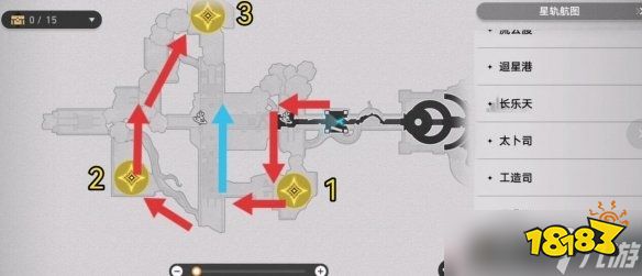 可以打开小地图按照这个路线依次开启,1号解完之后记得可以顺手开一下中间的传送锚点。