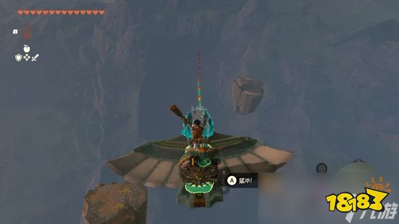 2、这个时候就要手持头部前往指引的地方,而这时我们是在空岛,想要拿到海拉鲁大陆去,其实也是挺简单的,因为周围是有飞机可以制作的,玩家只需要制作一辆飞机,把头部粘合在飞机上,飞往指引的地方即可。