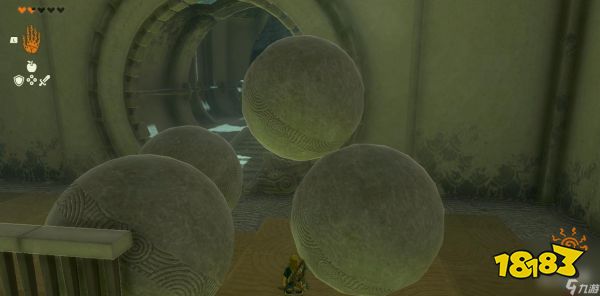 将石球举到左侧的凹槽旁边,当上方石球落下的时候有很短的间隙能触发组合。