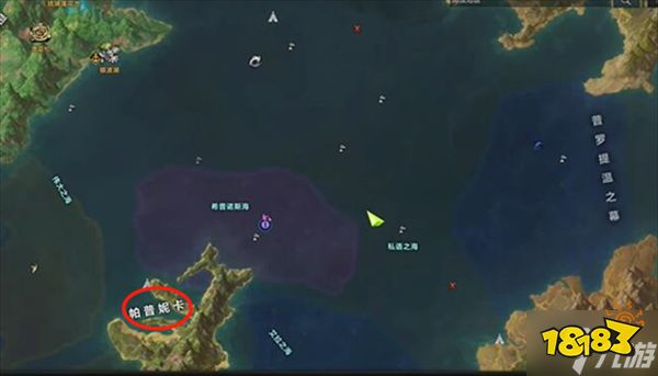 1、我们需要先前往帕普尼卡的上方(即红圈处的上方),来到希普诺斯海域中的这个地方。