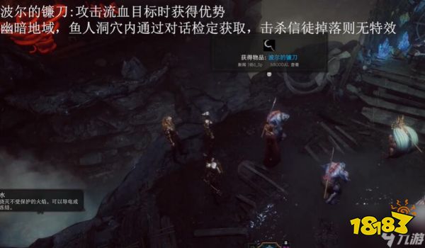 2、玩家需要在鱼人洞穴内通过和npc对话检定来获取波尔的镰刀,击杀信徒掉落则无特效。