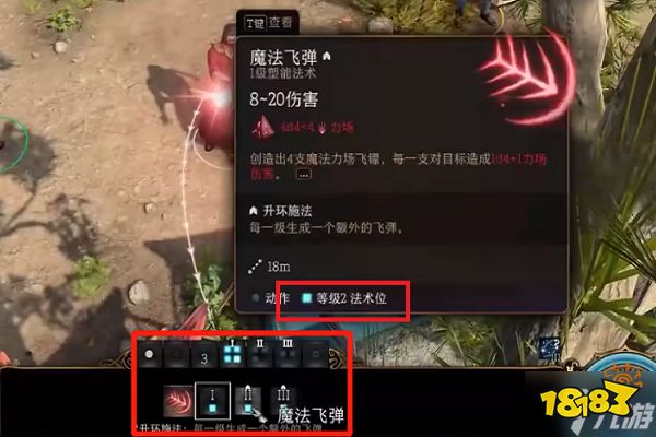 像是这里的用二环法术位释放一环法术魔法飞弹,能够造成8~20的伤害;