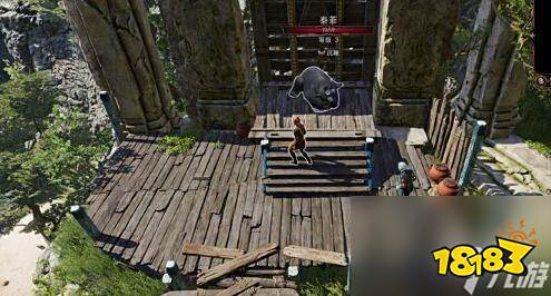 3、我们走到第二个房间,然后沿着外侧走,在如图位置使用跳跃到达对面。