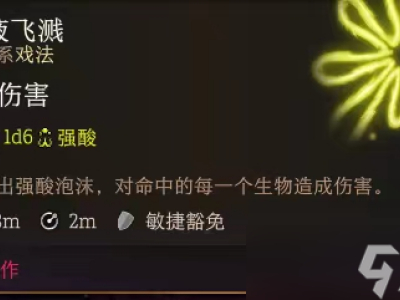 博德之门3酸液飞溅的主要作用就是喷射出强酸泡沫,对命中的每一个生物造成伤害,并且造成的伤害是非常高的玩家就可以根据自己的需求来进行选择使用。