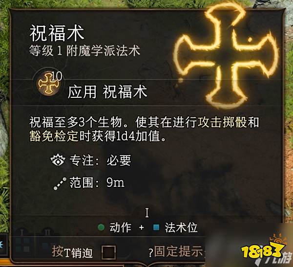 百分百成功的法术,提升队伍整体战斗能力,建议开战前进入回合模式先加buff.至于为什么不选灾祸术(理论上效果相同)是因为敌人有概率豁免,像我这样脸黑的经常三个敌人一个都不中