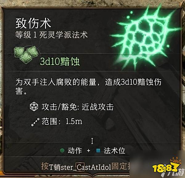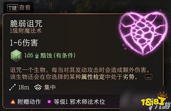 18183独有法术,释放一次之后就算敌人死亡也只要在花一个附赠动作就能给另一个敌人套上debuff