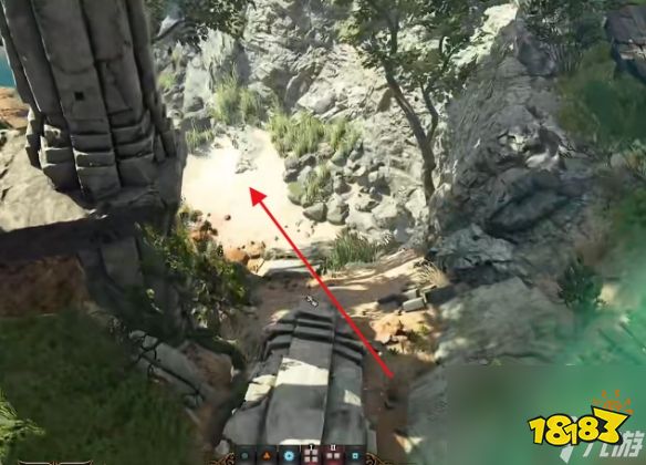 2、如下图所示,从下面石柱下去,会来到一条小河边。