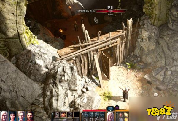 3、看到石门(203,604)后,与它交流就可以进入密道,然后用阿斯代伦破坏陷阱,在前进的时候会与4名地精强制交战。