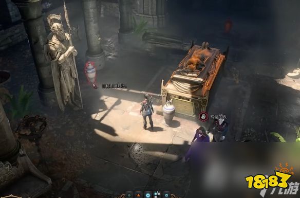 5、或者站在右边按钮旁边,一个人开回合制,先开棺材,再按按钮也不会触发陷阱。