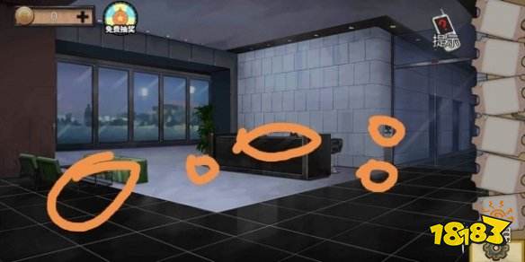 在盆栽处得到钥匙;在前台拿到圆珠笔;将圆珠笔拆开得到笔芯,去开茶几上的保险箱。