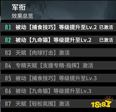 (4)军阶:喜闻乐见的氪金环节。军阶主要是对被动技能、天赋、专精天赋的激活和等级提升。提升军阶的材料为特定角色的信赖和泛用信赖。角色信赖可以通过抽卡 和困难副本 获得,目前只开放了部分角色通过困难副本获得信赖的方式,以后应该会开放更多吧。