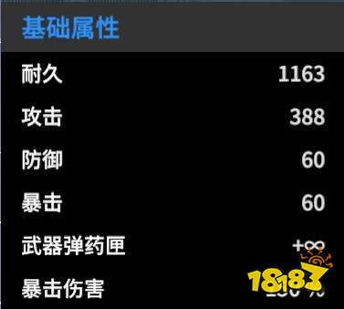基础属性分为耐久、攻击、防御、武器弹夹、暴击和暴击伤害