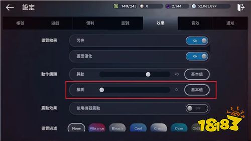首先来到设置-【效果】选项,关闭【画面优化】效果,并且将动作镜头的【模糊】设置到最0,就能明显改善画面模糊的视觉体验。如果还是觉得模糊,可以将画质拉满,目前只有三星和谷歌手机,可以开最高画质。