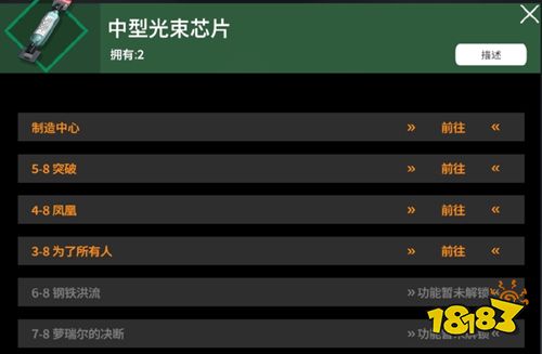 芯片主要用于武器突破与基因改造中,但与普通资源不同的是,芯片要在主线关卡中刷取获得。