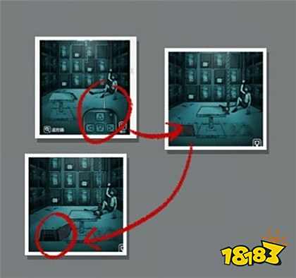 4、进入地下室,先去右边的实验室。打开实验室的门,来到电脑柜子下方,打开第一格柜子,获得档案袋里的X光片。