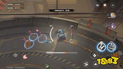 3、画面左下角的摇杆操控骑士走位,右下角释放技能。骑士左侧的白条和蓝条代表耐久值和护盾值,右侧显示子弹数量和战技能量。弹匣内子弹耗尽后会主动进入装填时间,当装填进度处于橙色区域时按下攻击键可触发「完美装填」,加快装填速度,同时对后排骑士回复一定的战技值,完美提高了战斗节奏感!