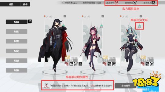 游戏不仅设计了较为经典的红绿蓝三色属性克制,还基于角色定位设计了感电、冷凝、灼烧等特性弱点克制,同时机娘们还拥有独特的抗性词条、角色专长定位等特性,让玩家可以根据自身的需求与关卡弱点来自由构建最合适的出战队伍。