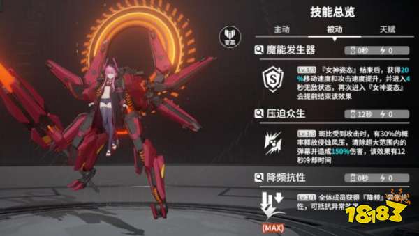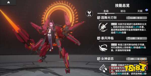 终末阵线斑比主动技能为普通技能暴风降临和登场战技女神姿态、被动技能为魔能发生器和压迫众生、被动天赋刃枪精通、军衔1卢恩符文、军衔4专精超弦、军衔7效能集中,总的来说斑比的技能都是比较简单粗暴的。