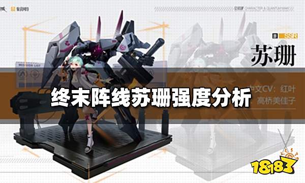 终末阵线苏珊并不是一个典型的输出或辅助,在输出上她在面对单一的残血无护盾敌人,也就是对BOSS补刀的时候,也能打出不错的伤害,但苏珊胜在她有着不俗的辅助能力,基础天赋能够提供15%的伤害提升值得一提。
