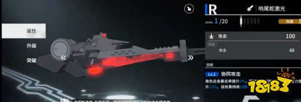 这款武器在低等级武器中拥有着近战远战双形态的收割能力,基础攻击力并不是很高100+60,但是应付前期的推图,战斗是完全绰绰有余的,这款武器比较适合于大多数的攻击型以及辅助型机甲,技能协同攻击可以提升自己的暴击力,并且释放机甲战斗技能之后可以再次提升自己的攻击力,持续十秒钟,简单来说就是十分干脆的输出武器,前期比较推荐响尾蛇激光。