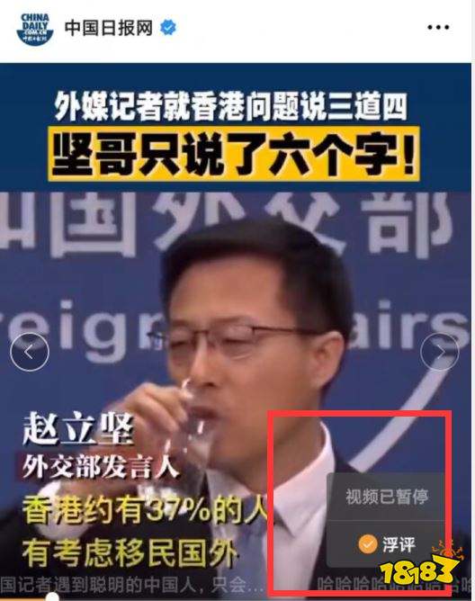 2、这时候在视频号视频的右下角会出现视频已暂停的信息,然后下面还有一个打钩的浮评,这个浮评就是所谓的弹幕评论。