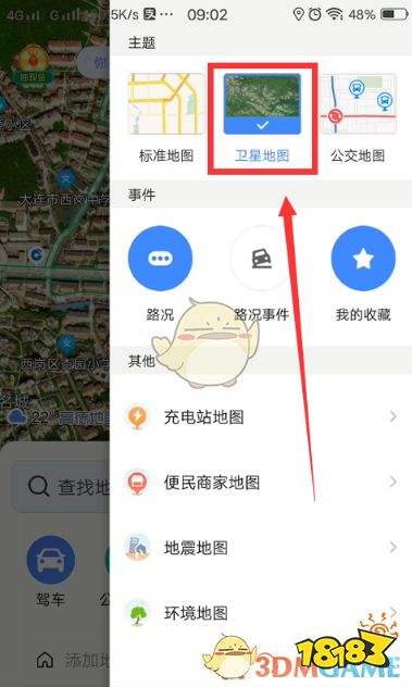 2、在切换界面中,我们需要找到“卫星地图”的选项,如下图所示。