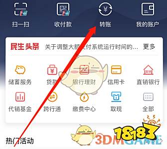 4、返回首页选择“转账”