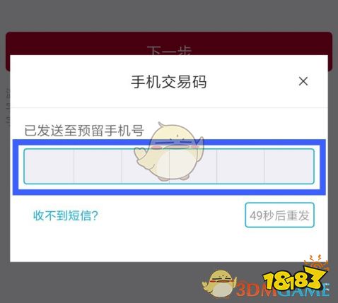 7、方框处输入收到的6位数手机交易码,即可重置密码。