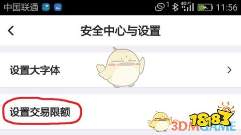 4、在安全中心与设置界面,选择“设置交易限额”,如图中红色标记;