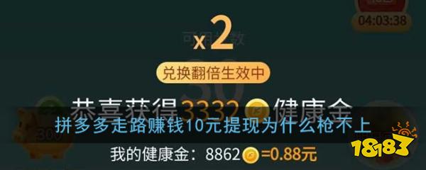 以上就是小编带来的拼多多走路赚钱10元提现为什么枪不上?走路赚现金10元提不到怎么办相关介绍了,更多资讯教程,请关注18183手游网。