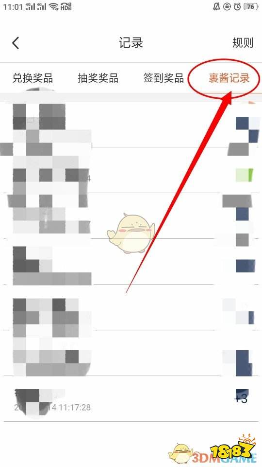 3、在兑换记录页面,找到最右边的“裹酱记录”,就可以看到了。