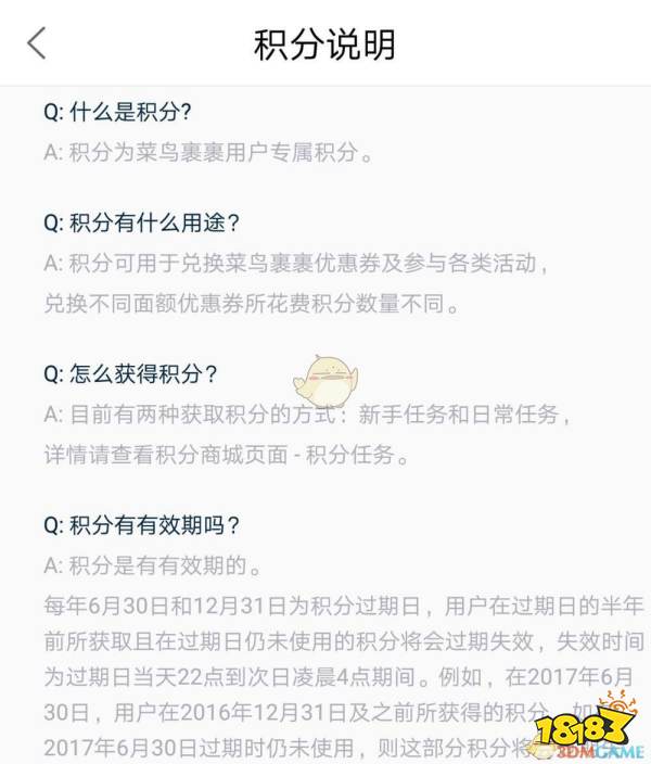 以上就是小编带来的菜鸟裹裹怎么获得积分?积分获得方法了,更多相关资讯教程,请关注18183手游网。