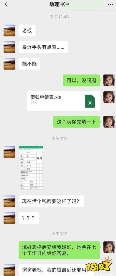 岳云鹏在微博晒出自己和助手的聊天截图,截图中他豪爽答应助手的借钱请求,但发送了一份借钱申请表