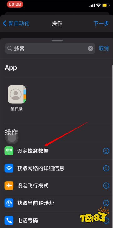 接着在动作这里选择【设定蜂窝移动】,找不到的直接输入关键词搜索就行;