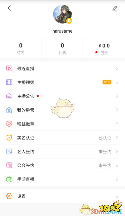 1)左上角的头像点击可进入主播个人中心,点击下方“齿轮”图标进入设置页面