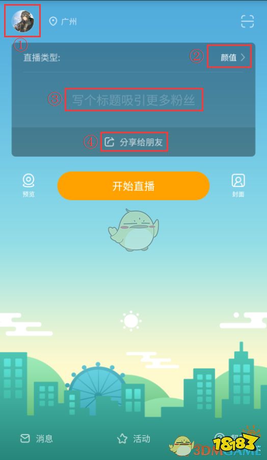 3)开播前须填写标题