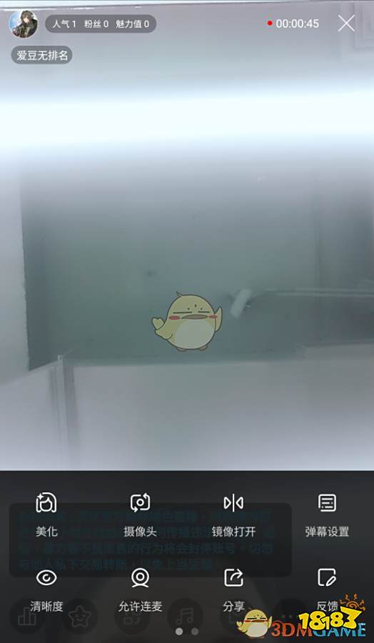直播间设置:右下省略号处,可设置美颜、摄像头切换、弹幕显示、画面清晰度等效果。