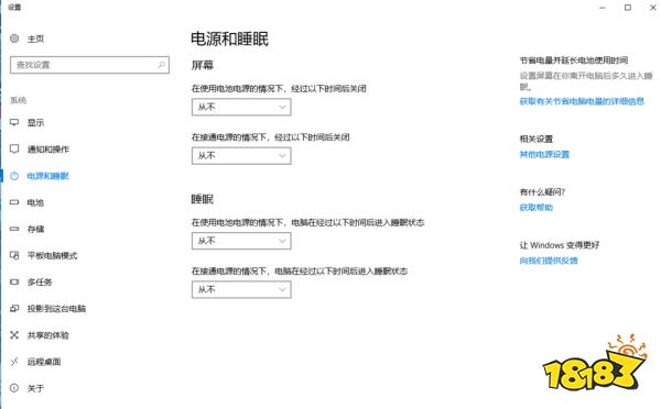 18183首页 Window Windows10系统屏幕常亮设置方法介绍