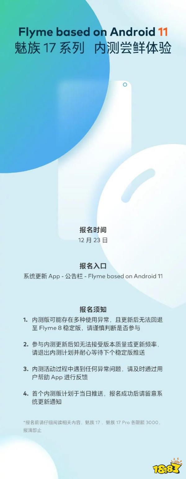 魅族科技宣布,Flyme based on Android 11 内测招募现已正式开启,魅族 17 系列手机用户打开「系统更新」App 即可参与报名。首个内测版计划于当日推送报名成功后请留意系统通知名额有限,报满即止。使用这个手机型号的用户可以在平台上申请这个系统的体验资格,一起来看看申请的方法吧!