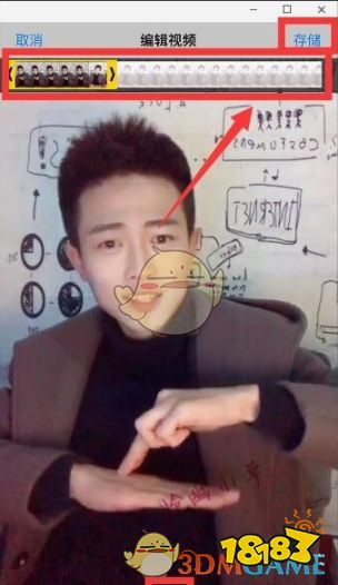 4、添加视频,可调整视频长度,点击播放查看效果,点击存储;