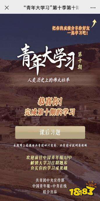 2021年1月11日,共青团更新了青年大学习第十季的第十期,这一期的主题是人类历史上的伟大壮举。其观看视频答案有2道,课后习题作业有8道。下面小编分享青年大学习第10季第10期所有题目的完整答案。