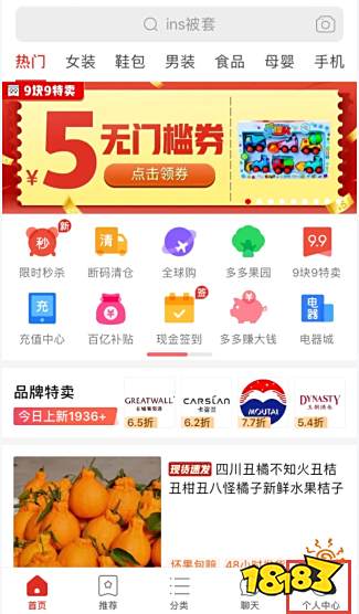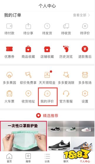 拼多多我的评价在哪里看?1、打开拼多多APP,点击右下角的个人中心;