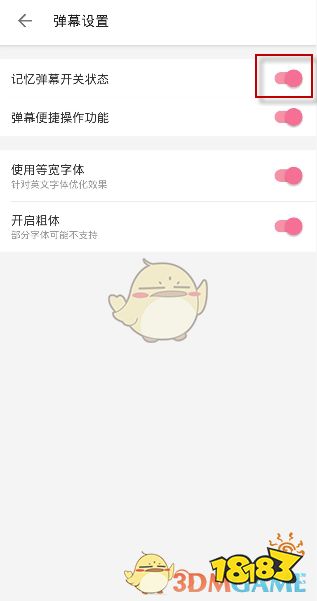 4、可以看到记忆弹幕开关状态,将其关闭或开启即可。