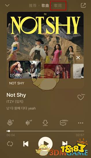 1、打卡qq音乐歌曲界面,点击顶部的“歌词”;