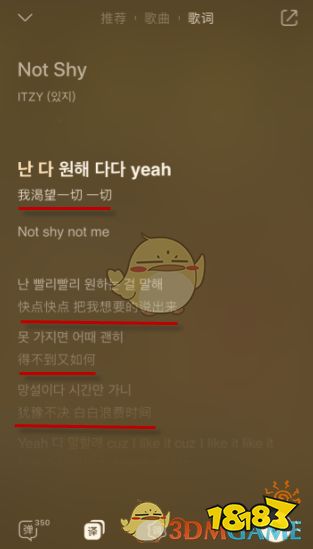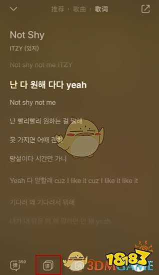 2、切换到歌词界面,点击界面底部的“译”图标;