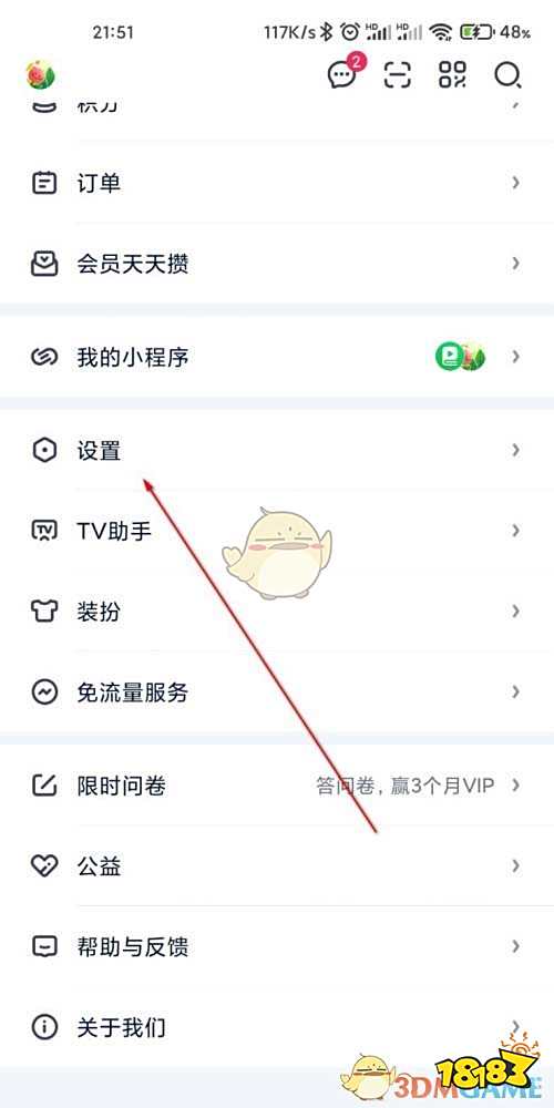 1、打开爱奇艺,在“我的”界面点击“设置”