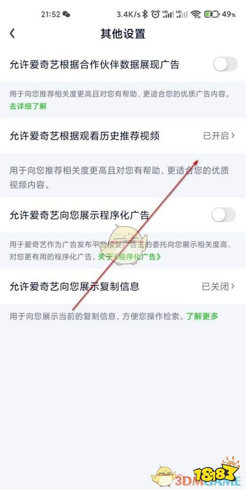 18183首页 爱奇艺 《爱奇艺》根据观看历史推荐视频关闭方法